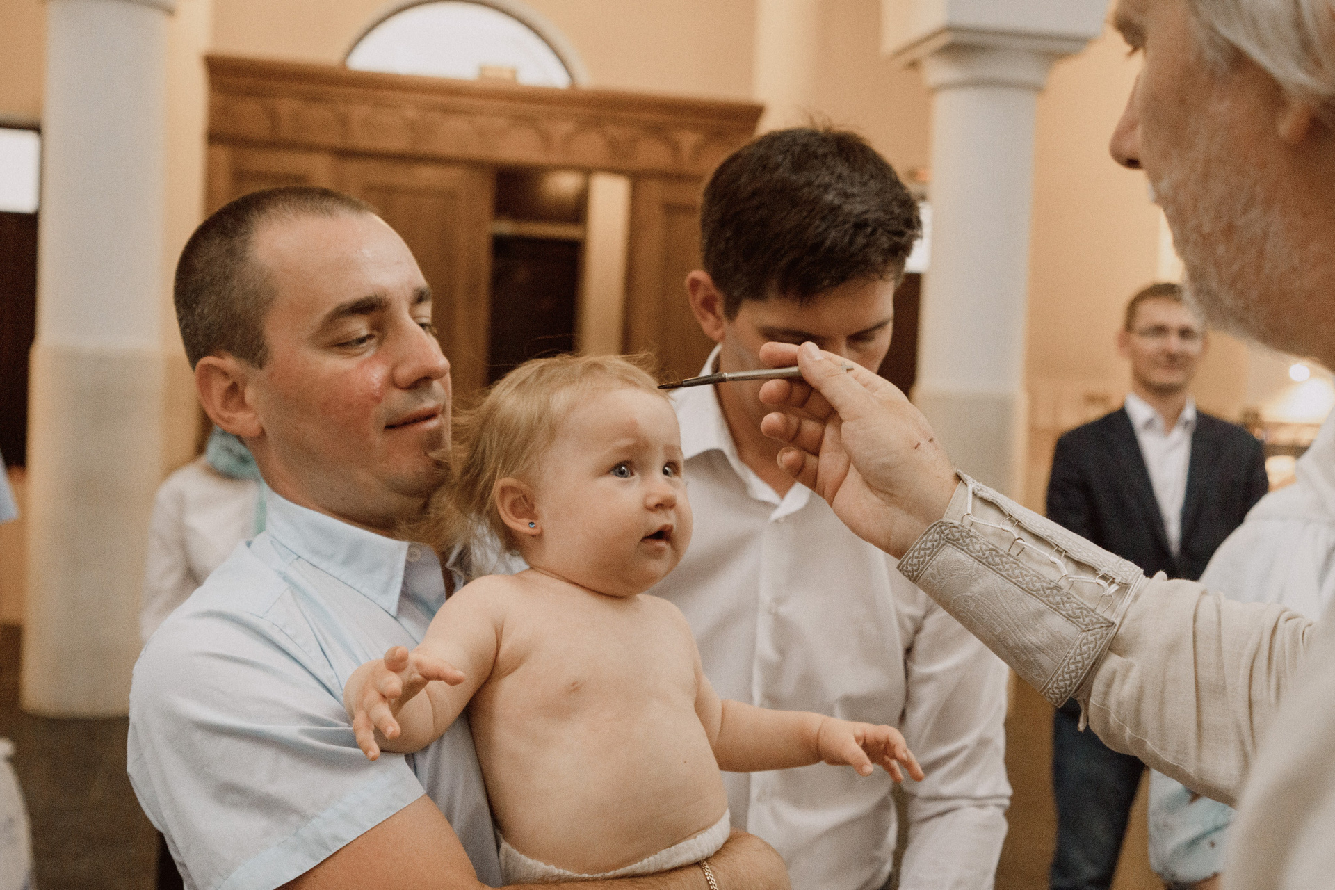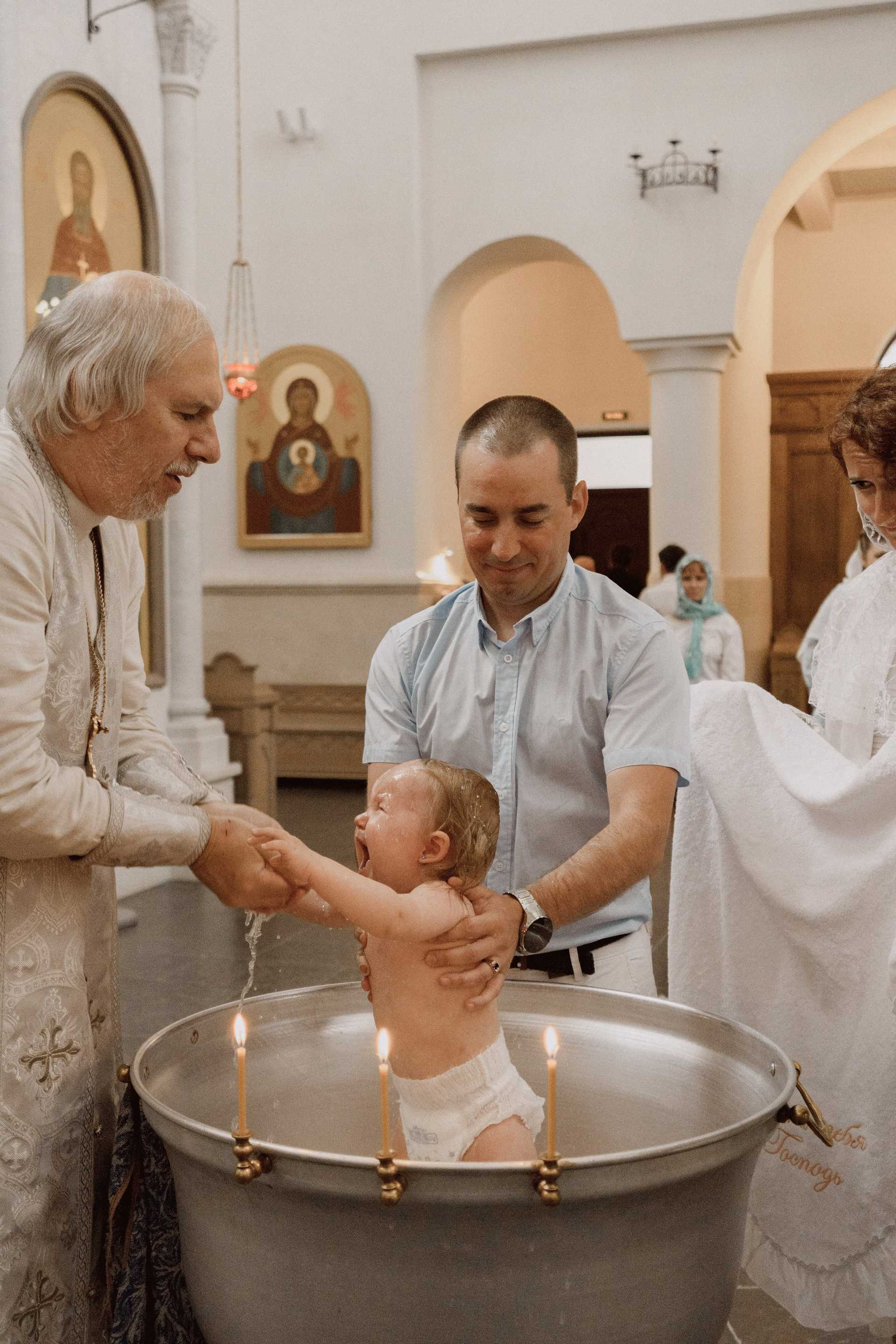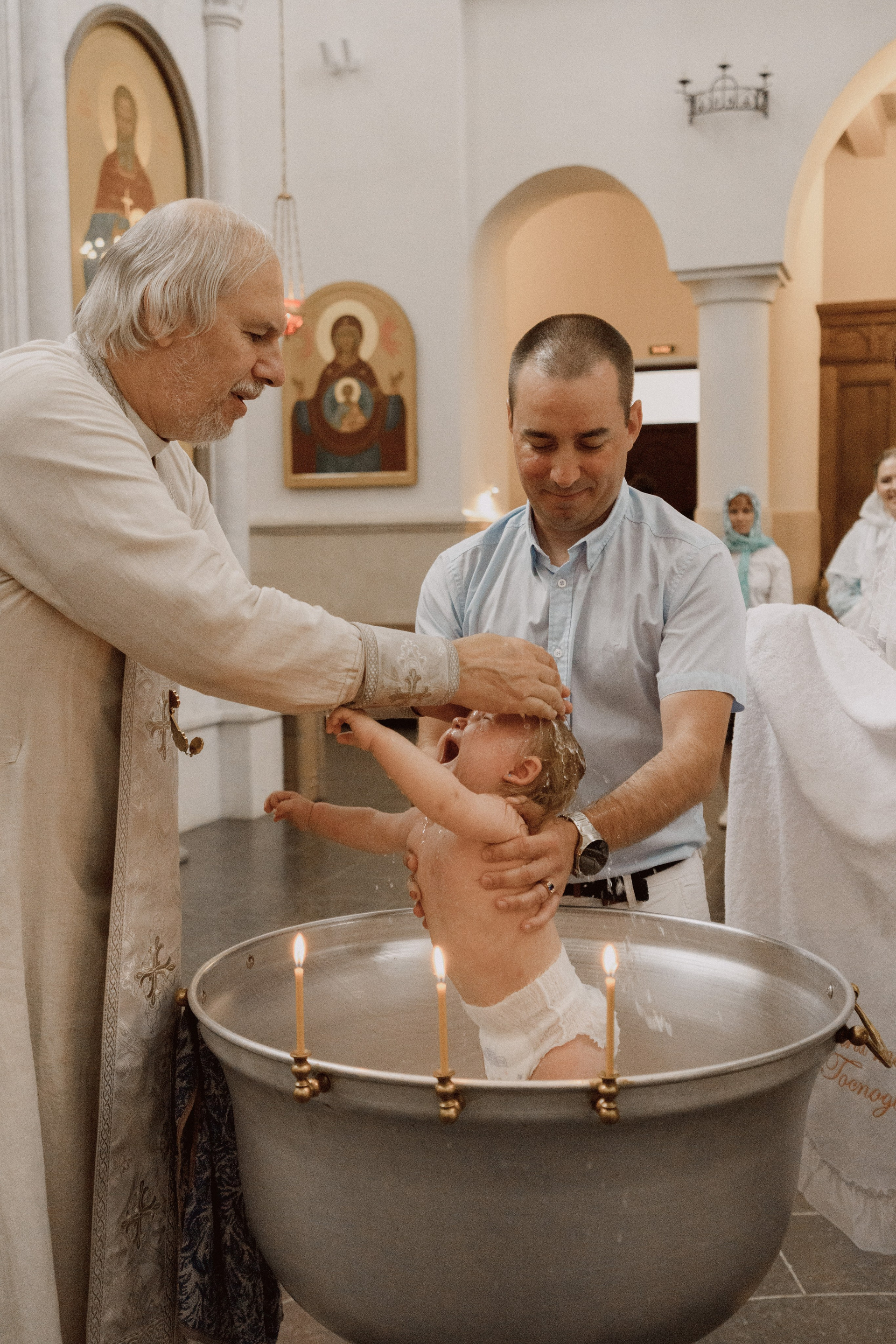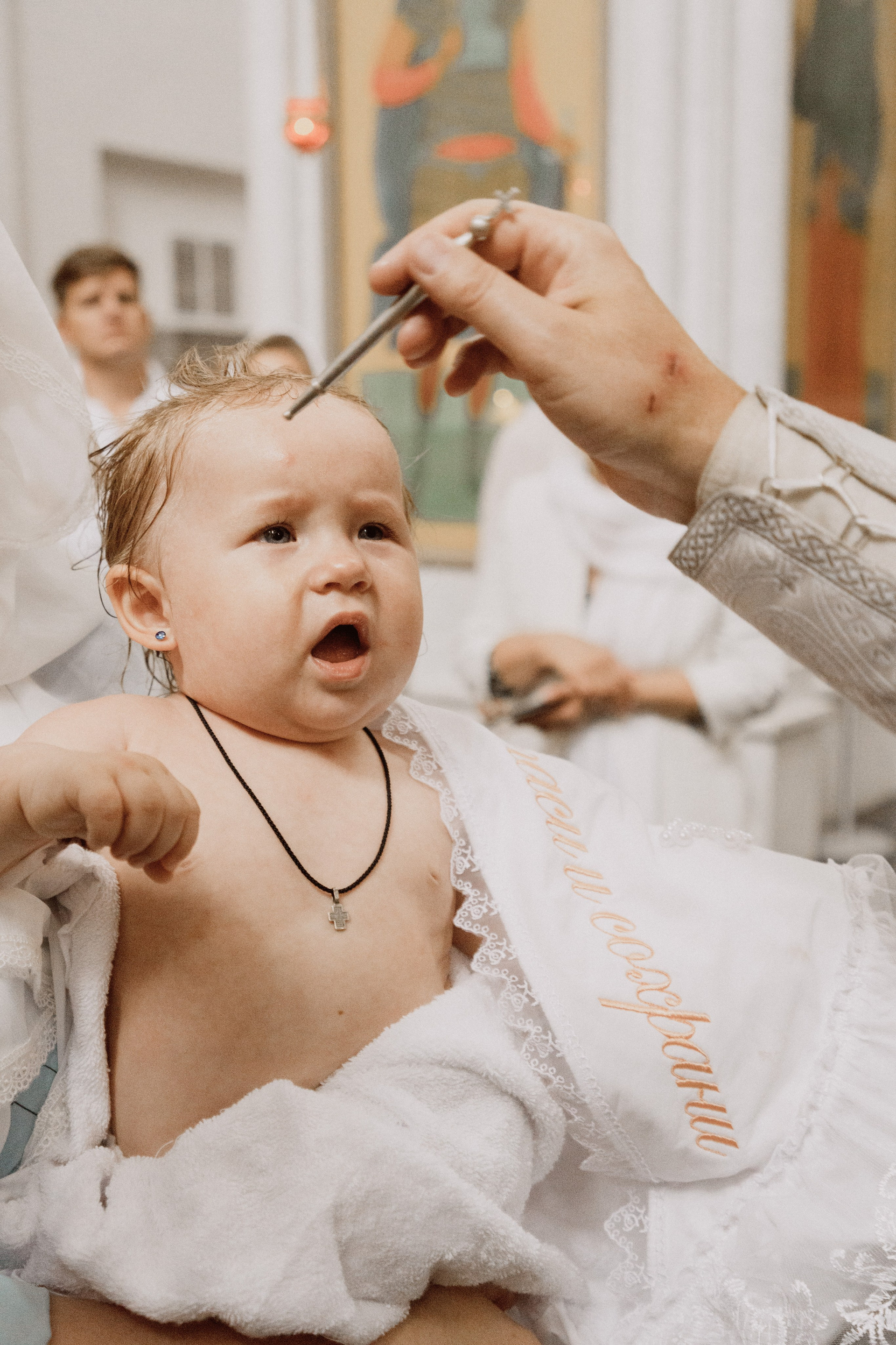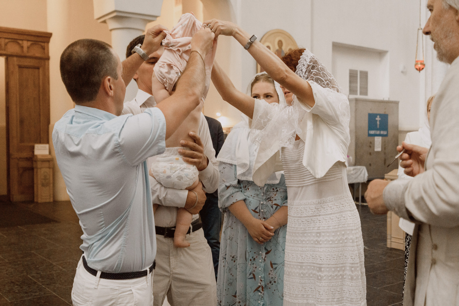 Крещение проводится в маленькой крестильной комнате, где...
