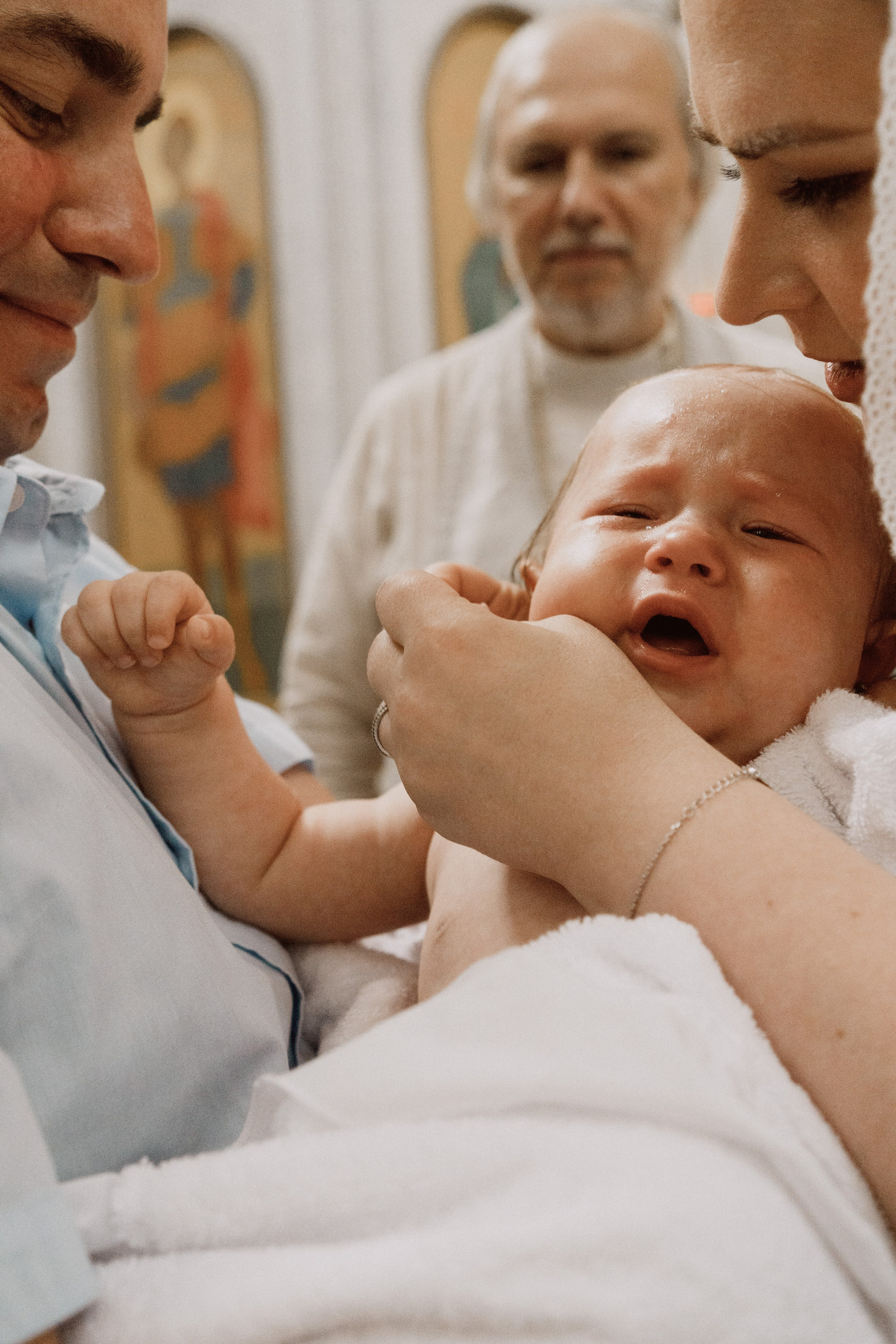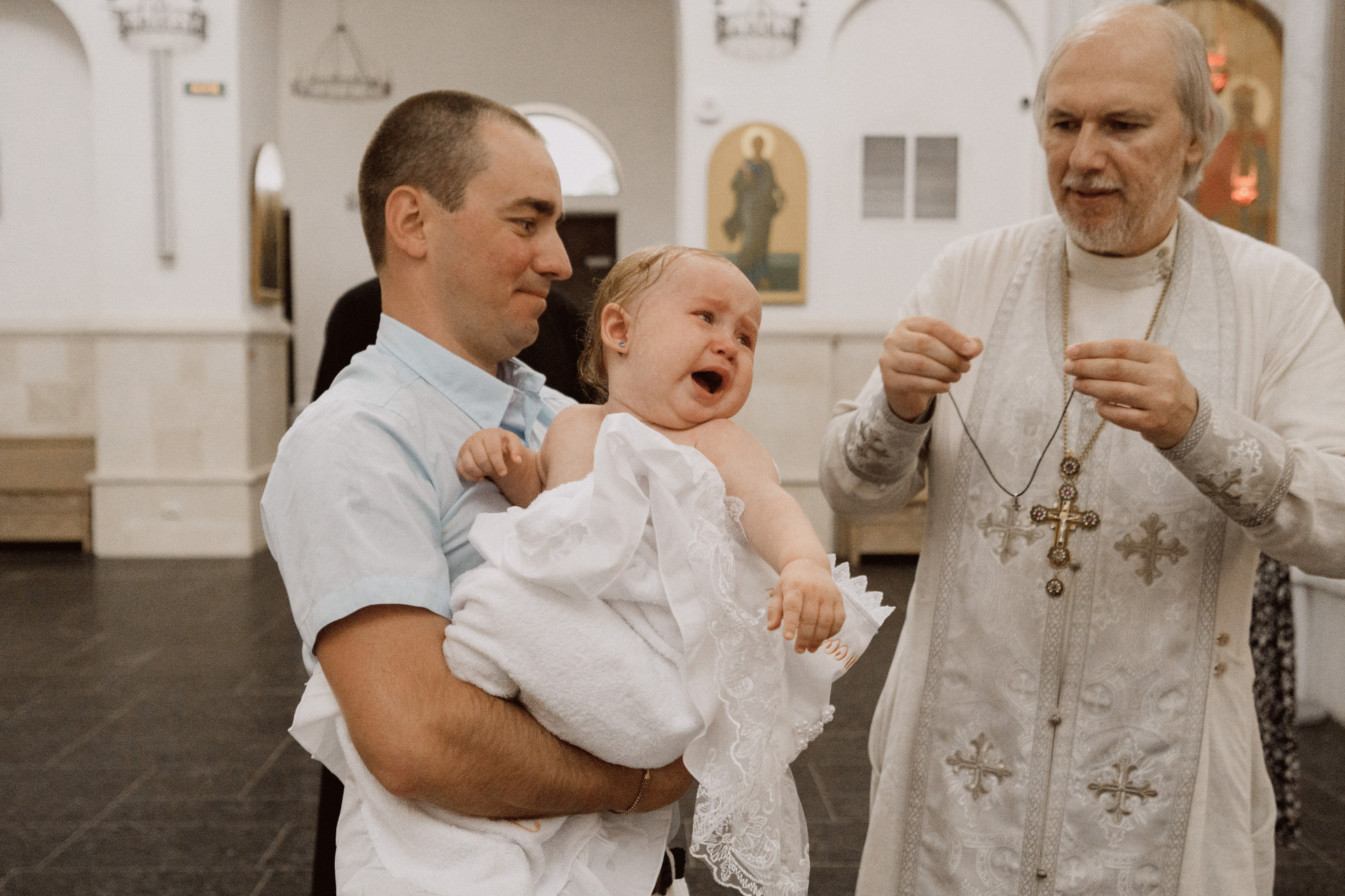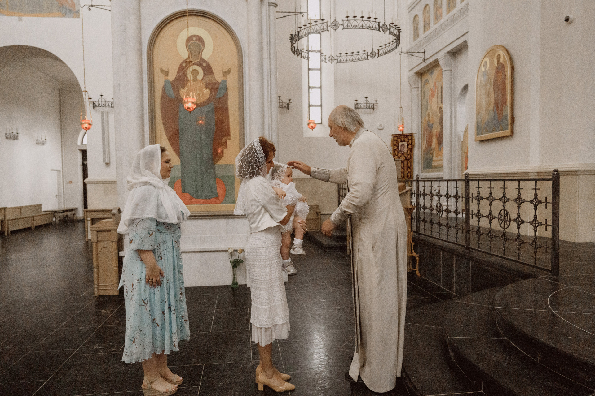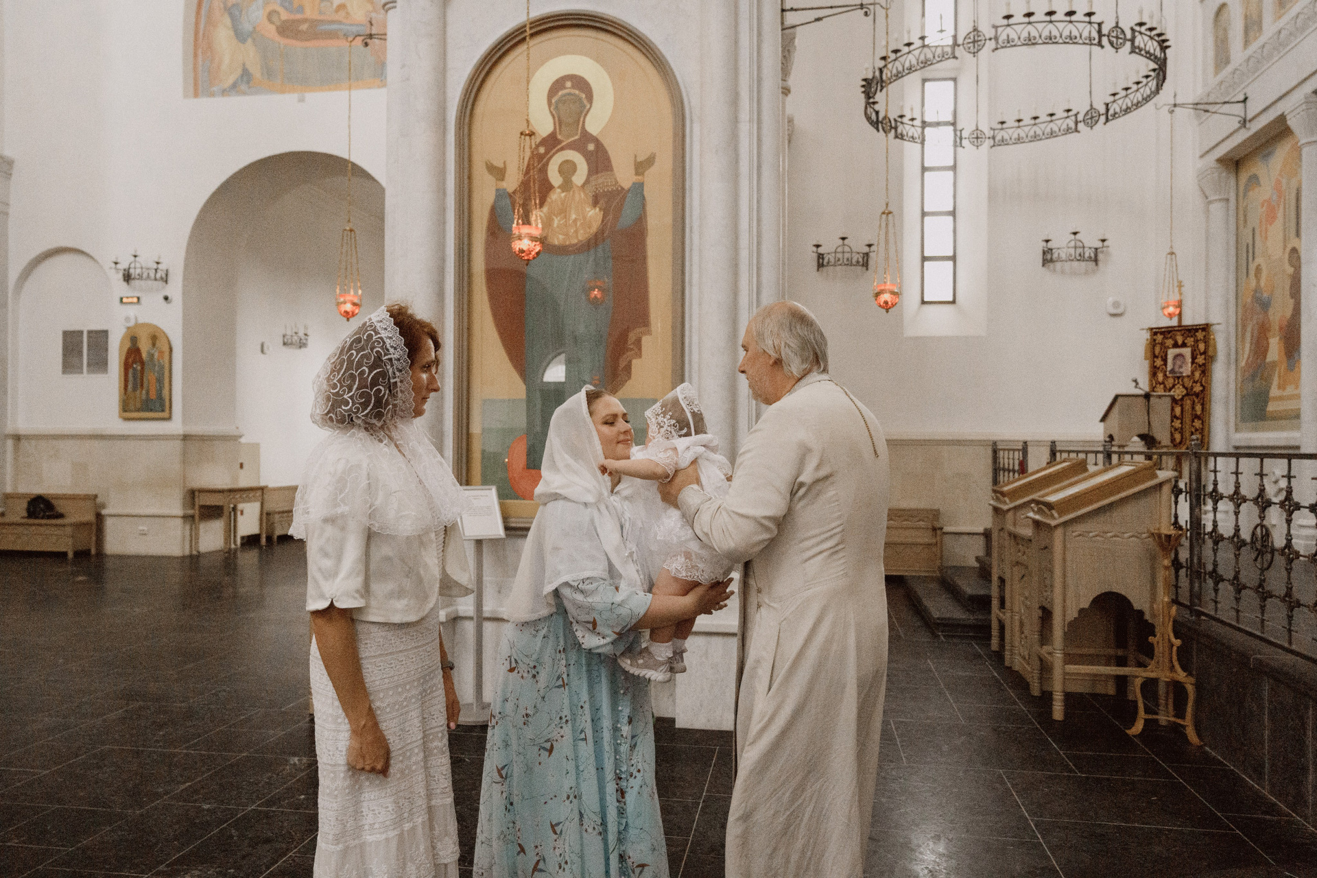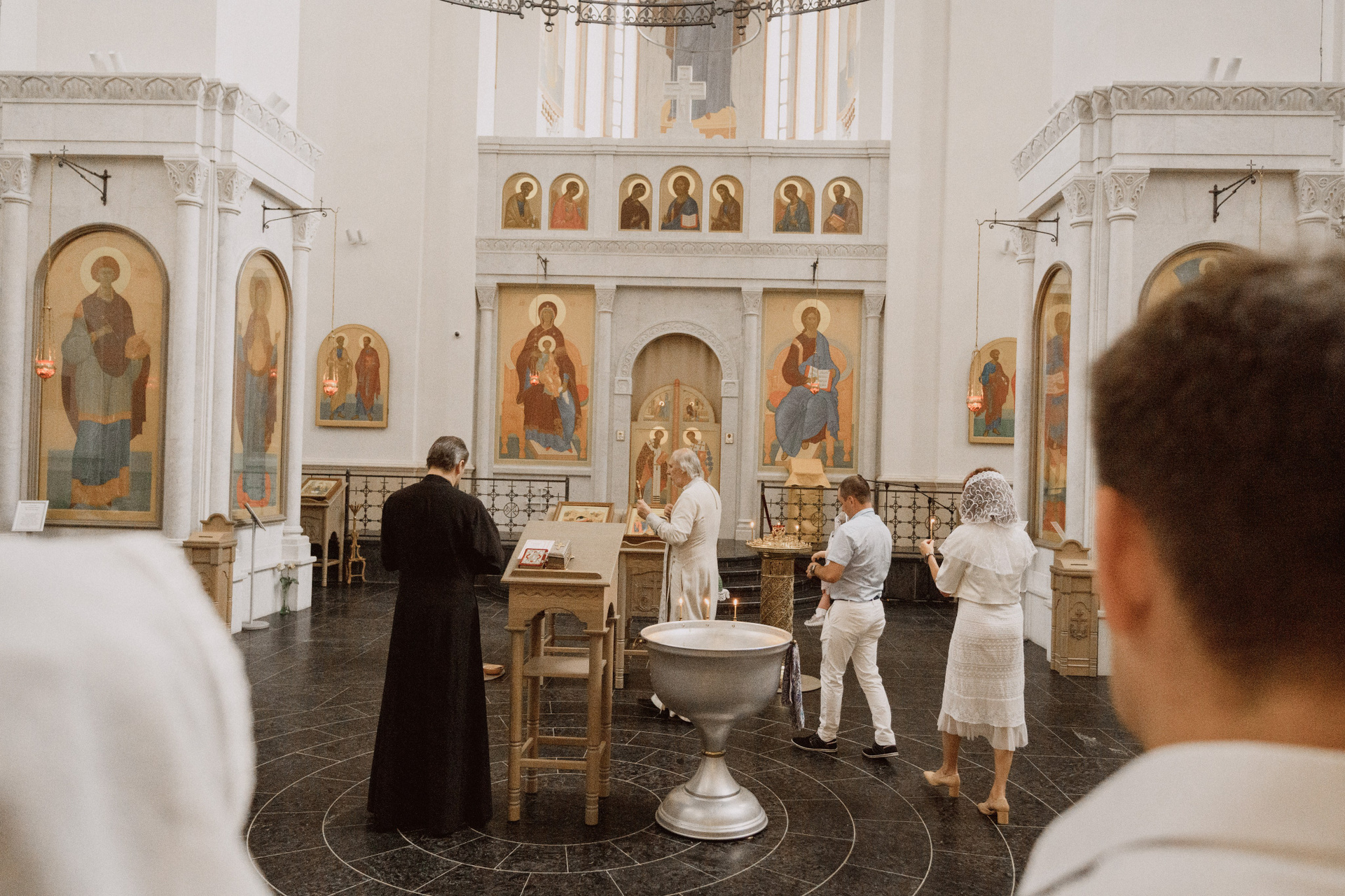 Крещение проводится в маленькой крестильной комнате, где...